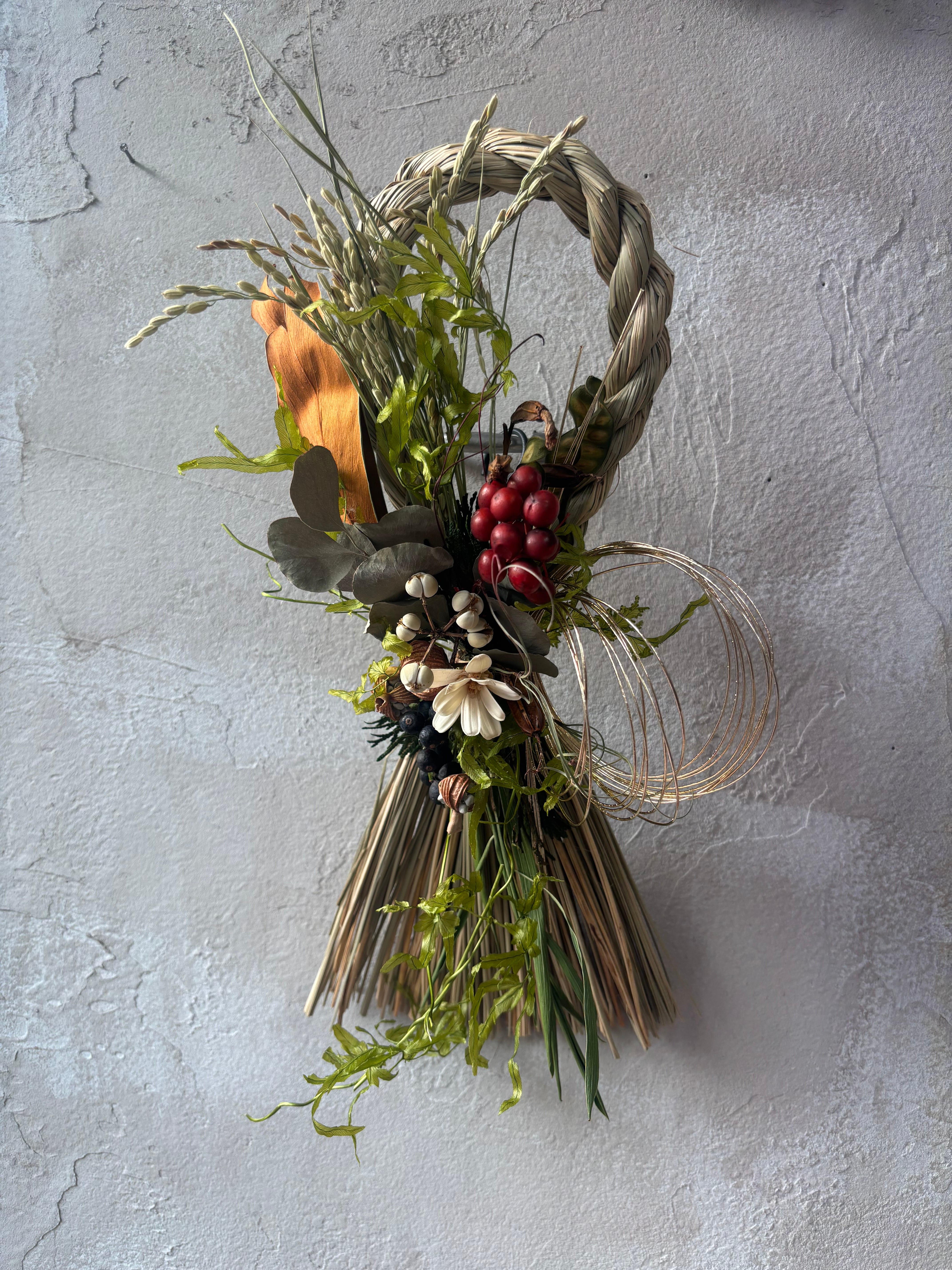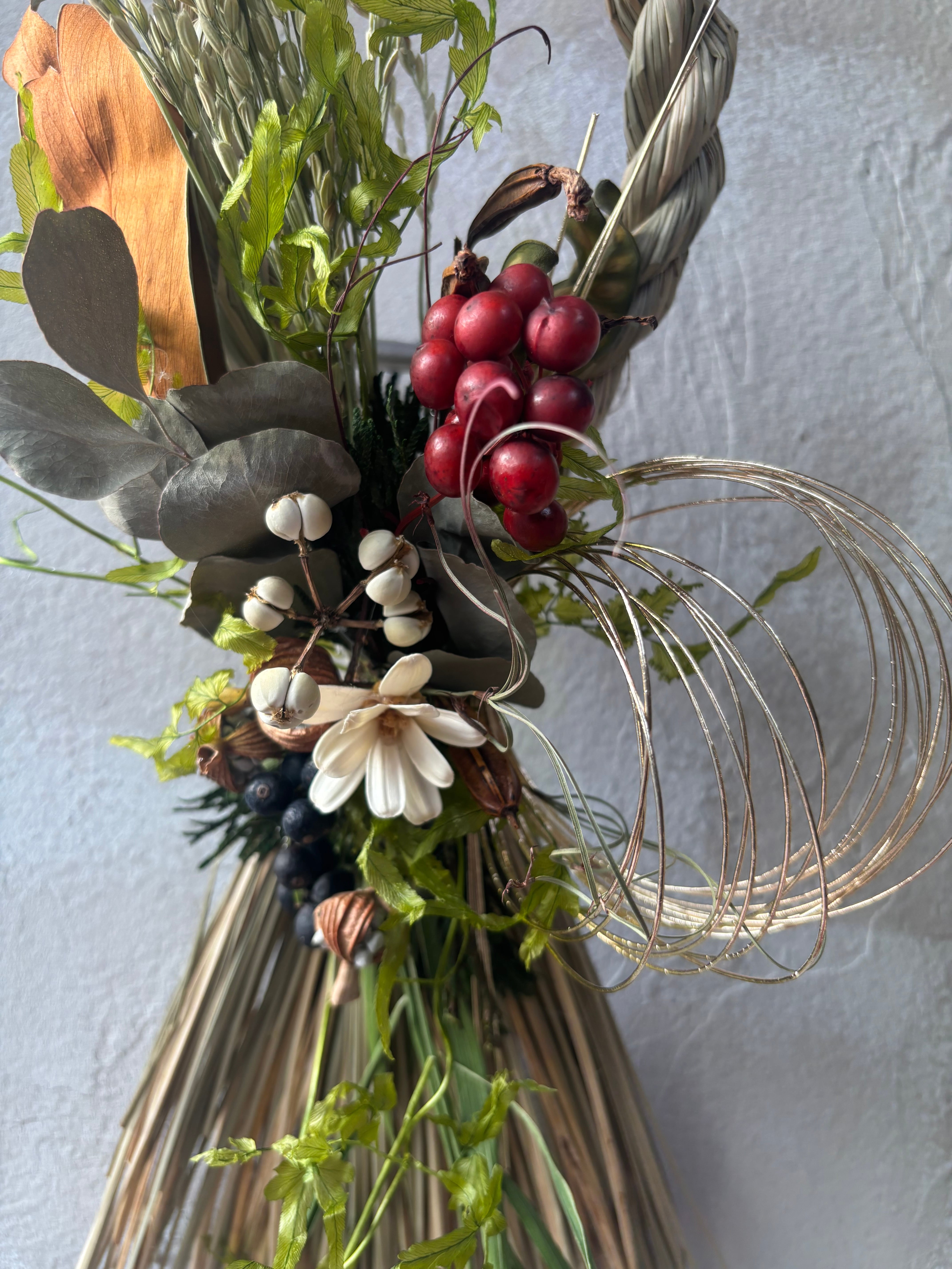 長さ35cmのしめ縄をドライフラワーでアレンジ