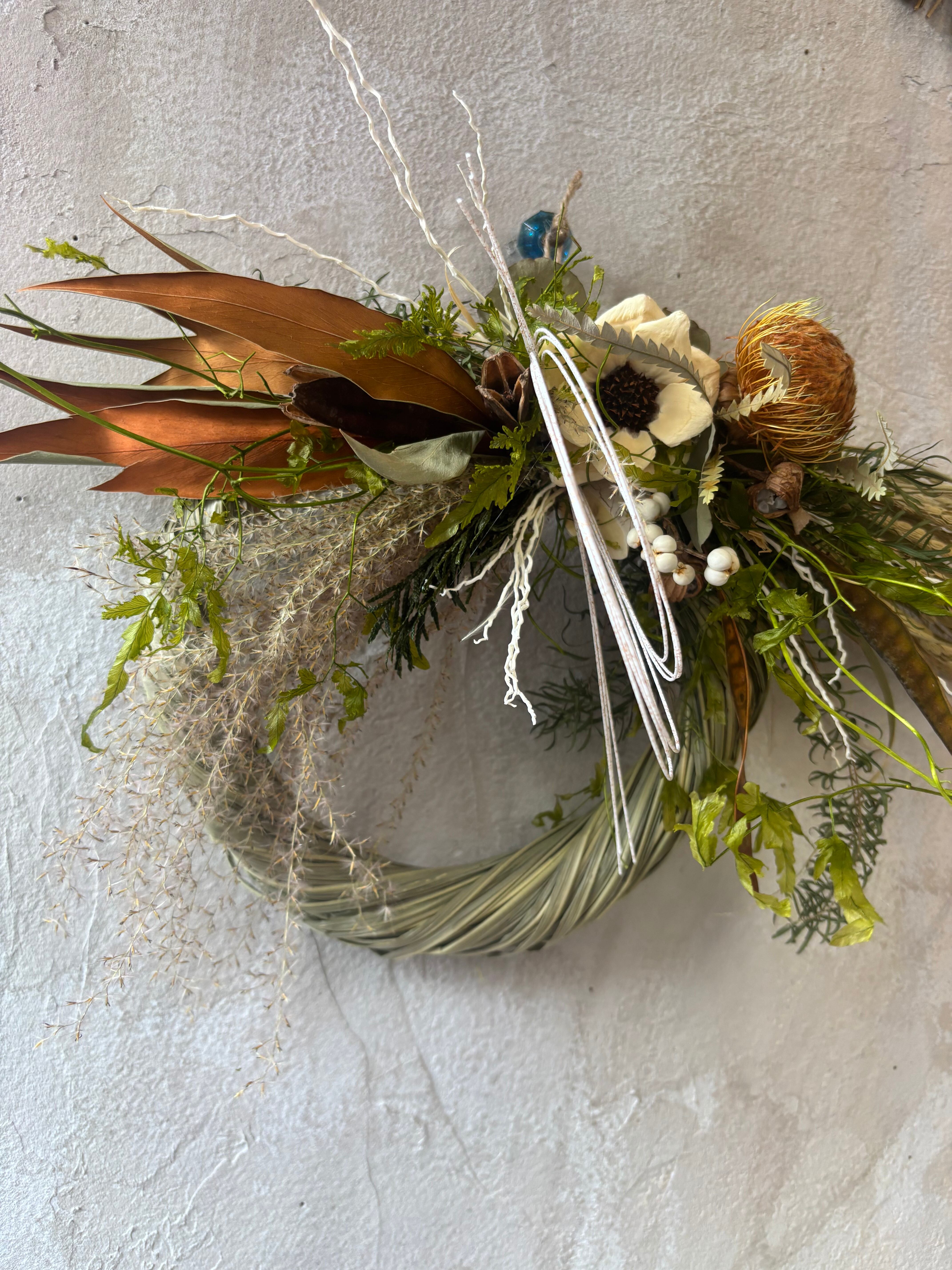 直径22cmのしめ縄をドライフラワーや実でアレンジ
