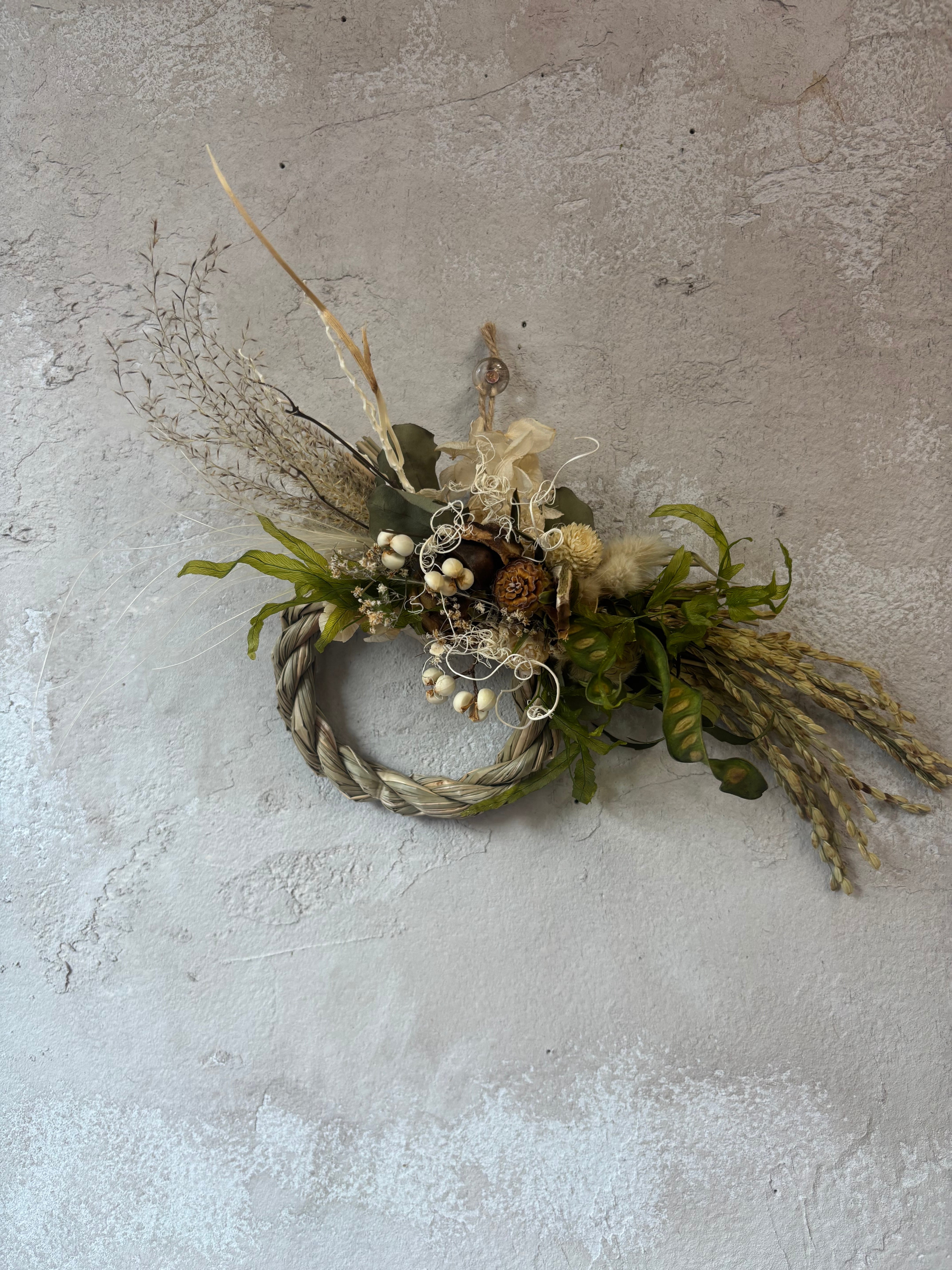 直径9cmしめ縄をドライフラワーでアレンジ
