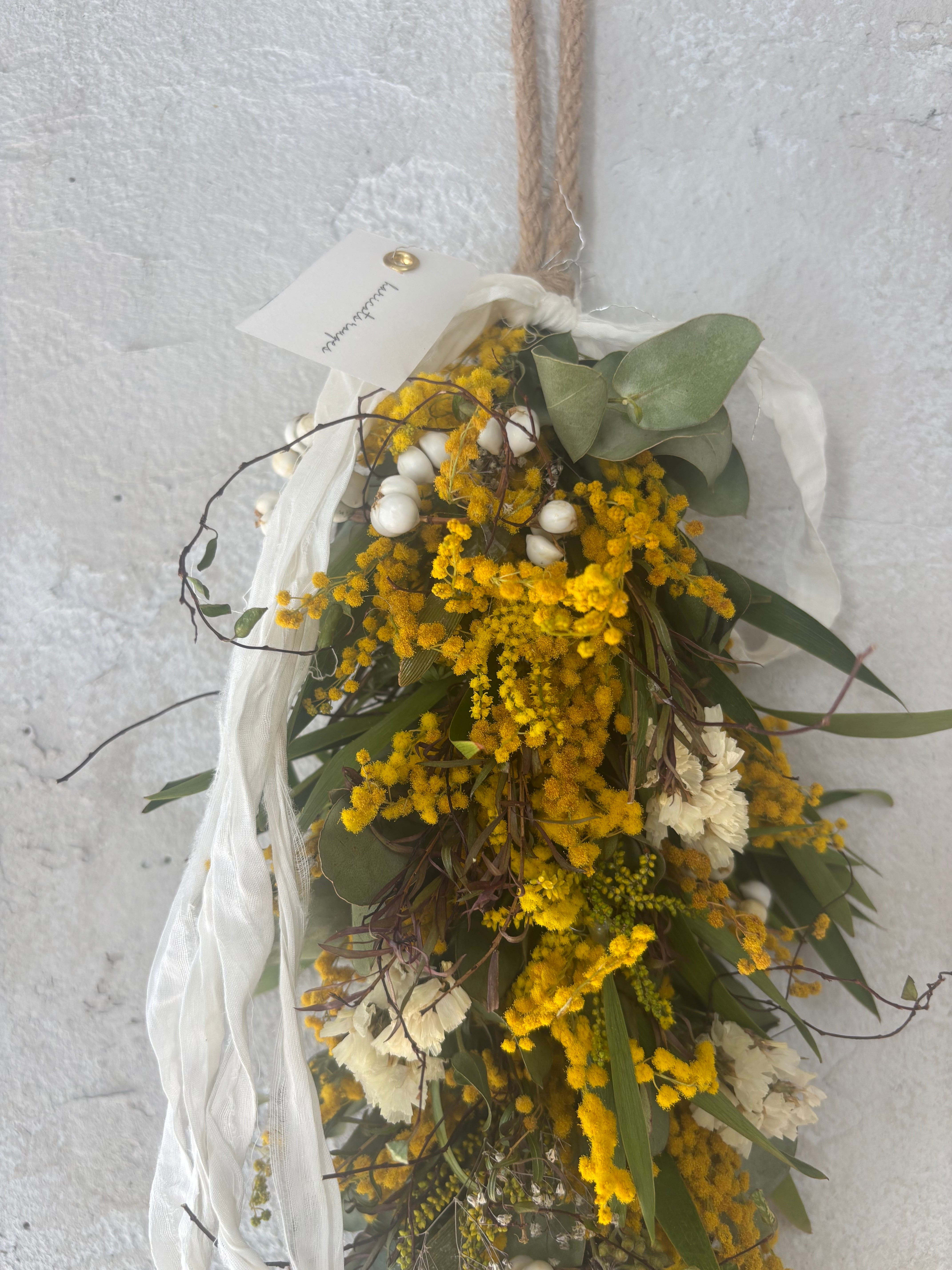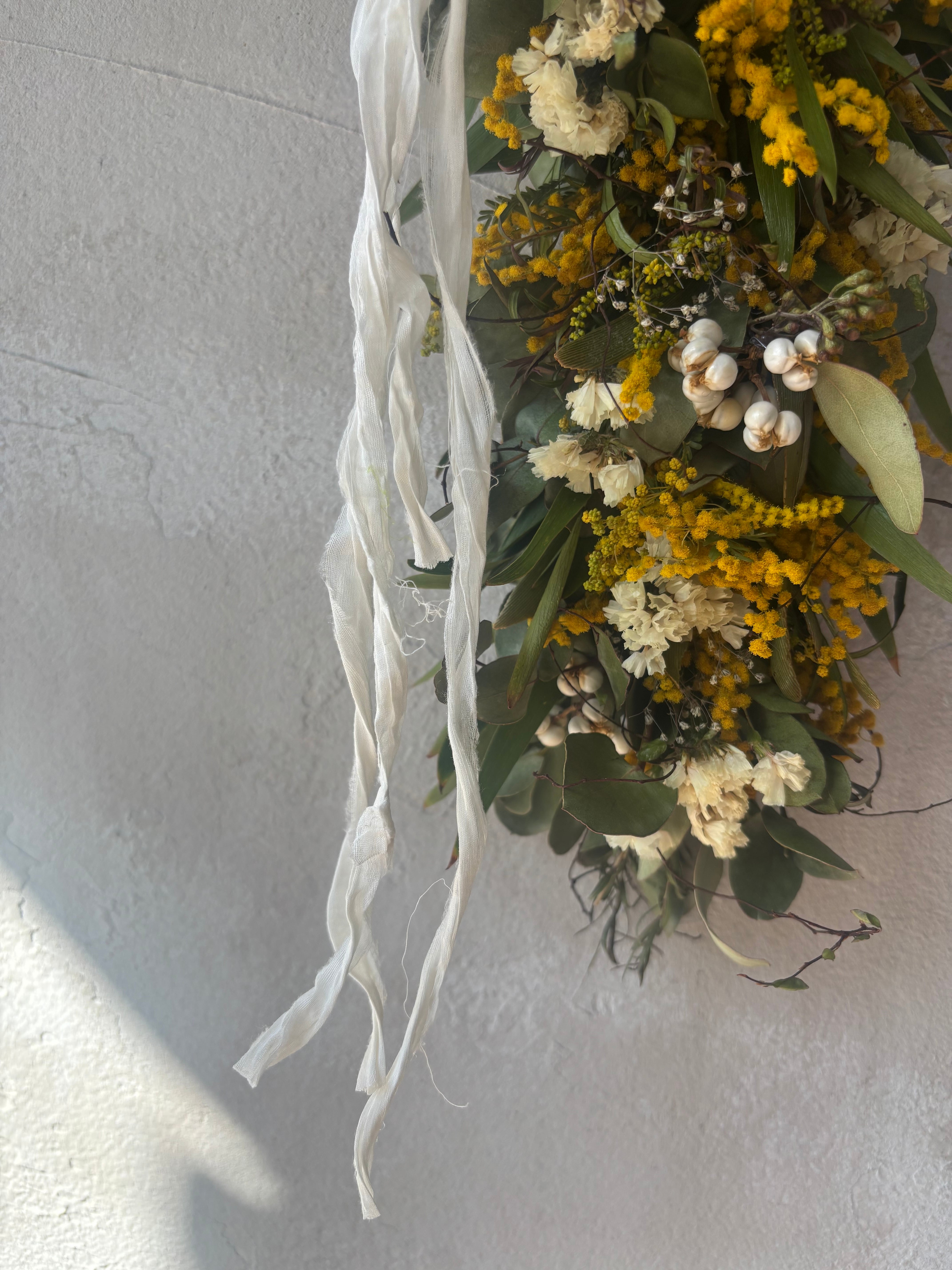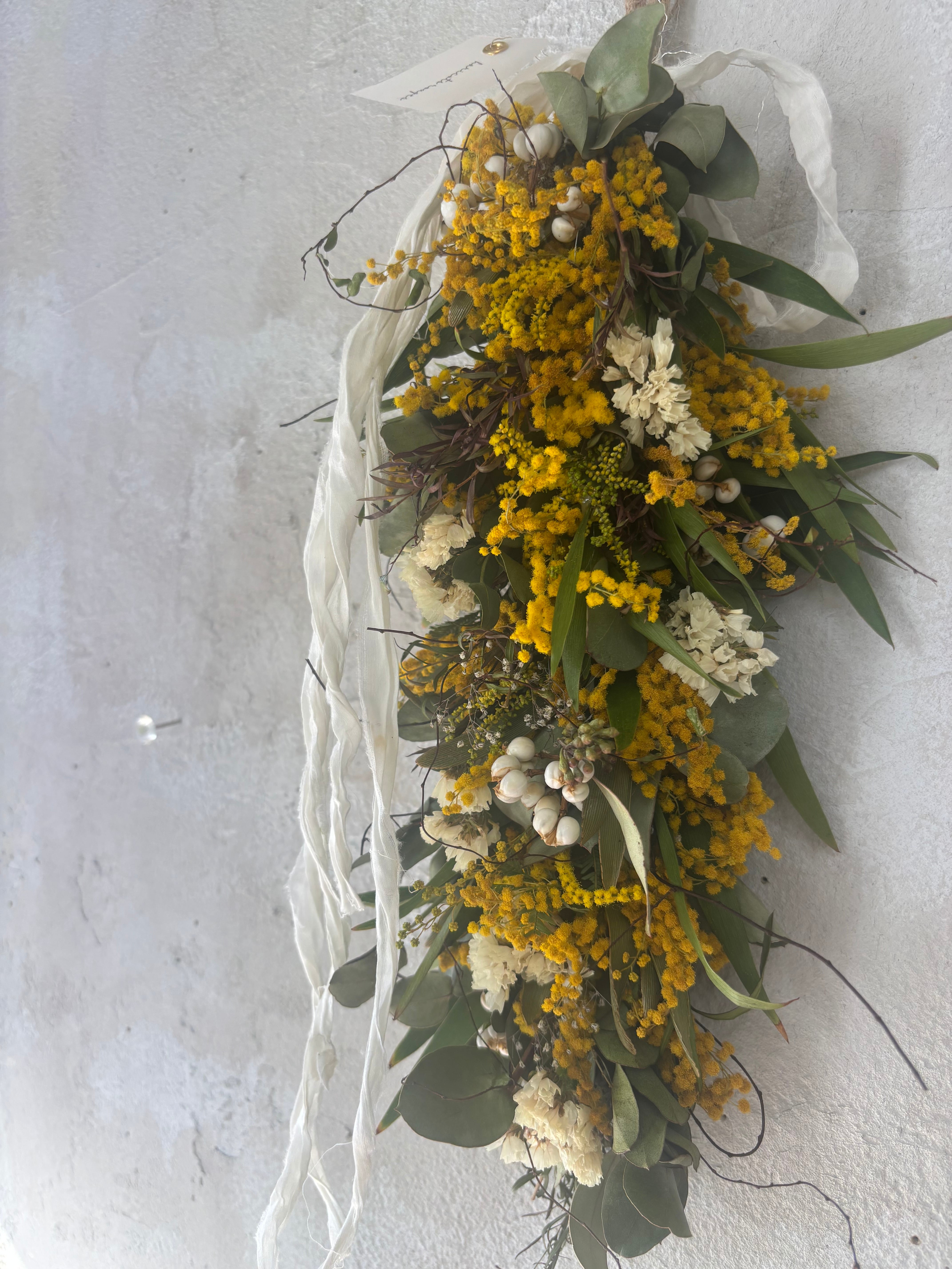 ミモザ以外にもいろんな花材も入れております。